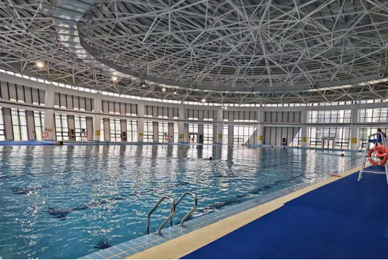 贵州医科大学游泳馆总面积达3129.64平方米,以双泳池配置满足多元人群需求。其中主泳池严格遵循国际标准建造,呈50×25米规格;另一座20×10米的小泳池,则为不同年龄层及技能水平的使用者提供针对性空间。